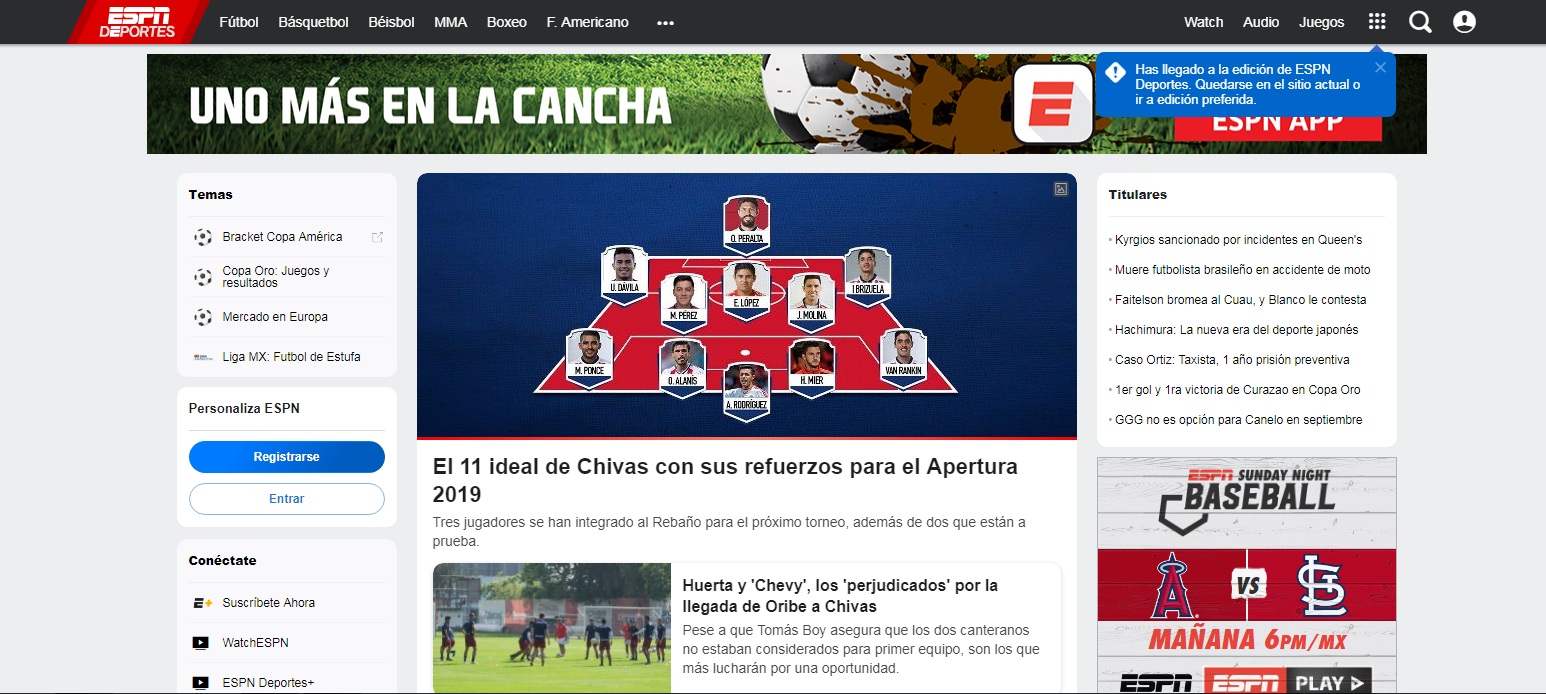 PAGINAS DE FUTBOL Espn Deportes https://espndeportes.espn.com/ Fox Deportes https://www.foxdeportes.com/ 20 Minutos https://www.20minutos.es/deportes/ Compártelo: Compartir en X (Se abre en una ventana nueva) X Comparte en Facebook (Se abre en una ventana nueva) Facebook Me gusta Cargando...